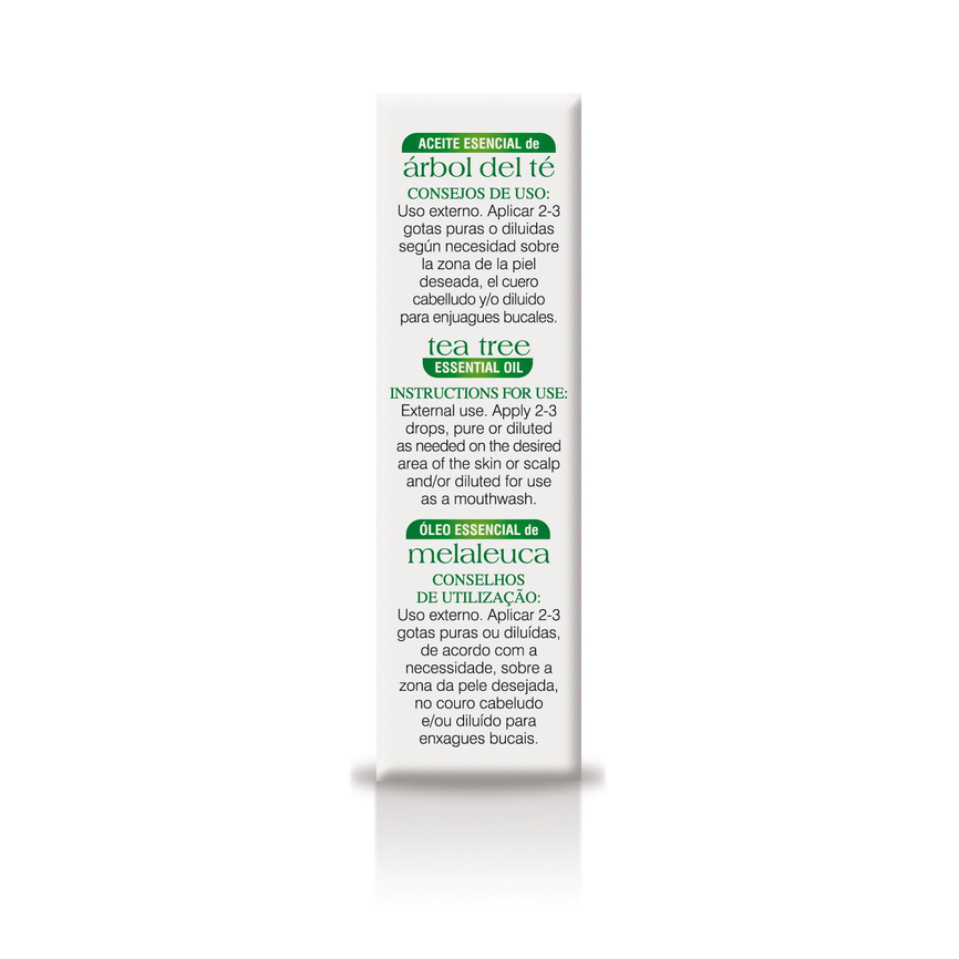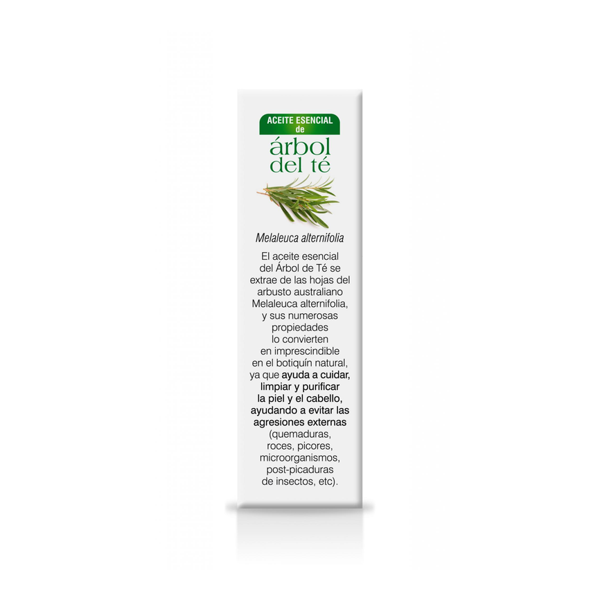 El aceite esencial del Árbol del Té se extrae de las hojas del arbusto australiano Melaleuca alternifolia y sus numerosas propiedades lo convierten en imprescindible en el botiquín natural, ya que ayuda a cuidar, limpiar y purificar la piel y el cabello, ayudando a evitar las agresiones externas (quemaduras, roces, picores, microorganismos, post-picaduras de insectos, etc.)