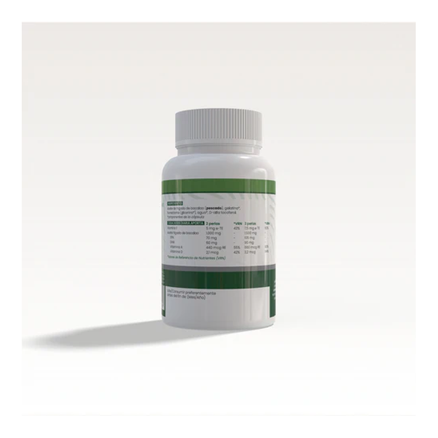 El aceite de hígado de bacalao es una fuente de vitaminas A y D. La vitamina A contribuye al mantenimiento de la piel y mucosas en condiciones normales. La vitamina D contribuye a la absorción y utilización normal del calcio y el fósforo, y al mantenimiento de los dientes y huesos en condiciones normales.