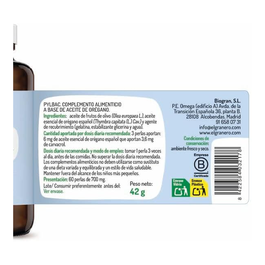 ACEITE DE OREGANO ESPAÑOL (PYLBAC) 60perlas 700 mg. EL GRANERO