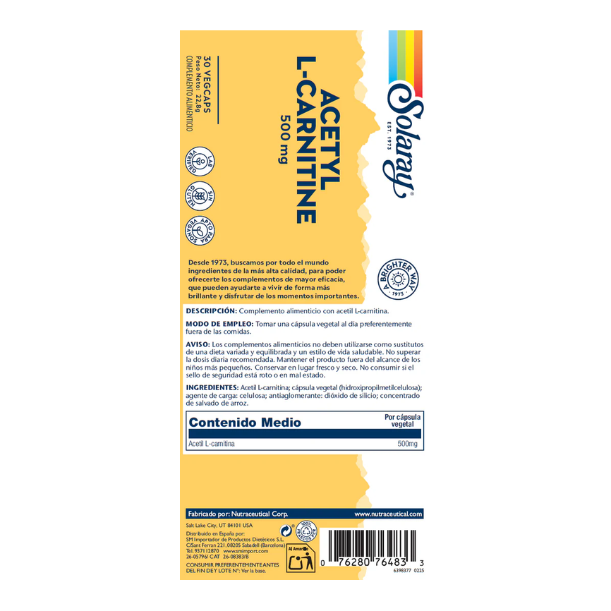 EAN: SOL13064ACETYL L-CARNITINA - 30 VEGCAPS Complemento alimenticio con acetil L-carnitina. ... leer másAñadir al carritoACETYL L-CARNITINE 500mg. 30cap. SOLARAYACETYL L-CARNITINA - 30 VEGCAPS
