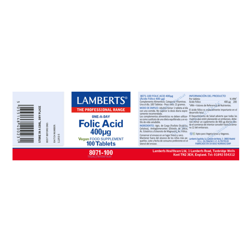 ACIDO FOLICO 400 mcg. 100 compr. LAMBERTS
