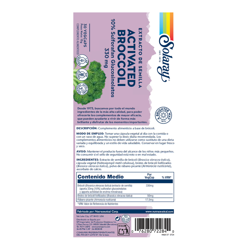 ACTIVATED BROCCOLI - 30 VEGCAPS Complemento alimenticio a base de brócoli. ... leer másAñadir al carritoACTIVATED BROCCOLI seed extract 350mg. 30cap. SOLARAYACTIVATED BROCCOLI - 30 VEGCAPS