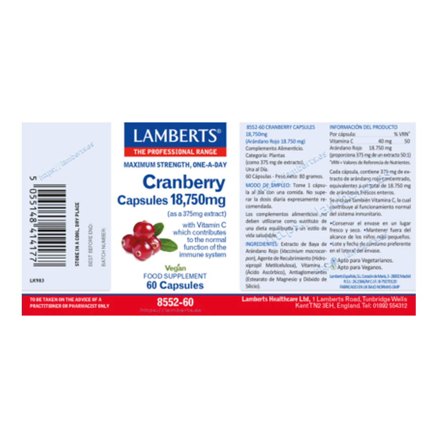 ARANDANO ROJO-CRANBERRY 18750mg. 60cap. LAMBERTS