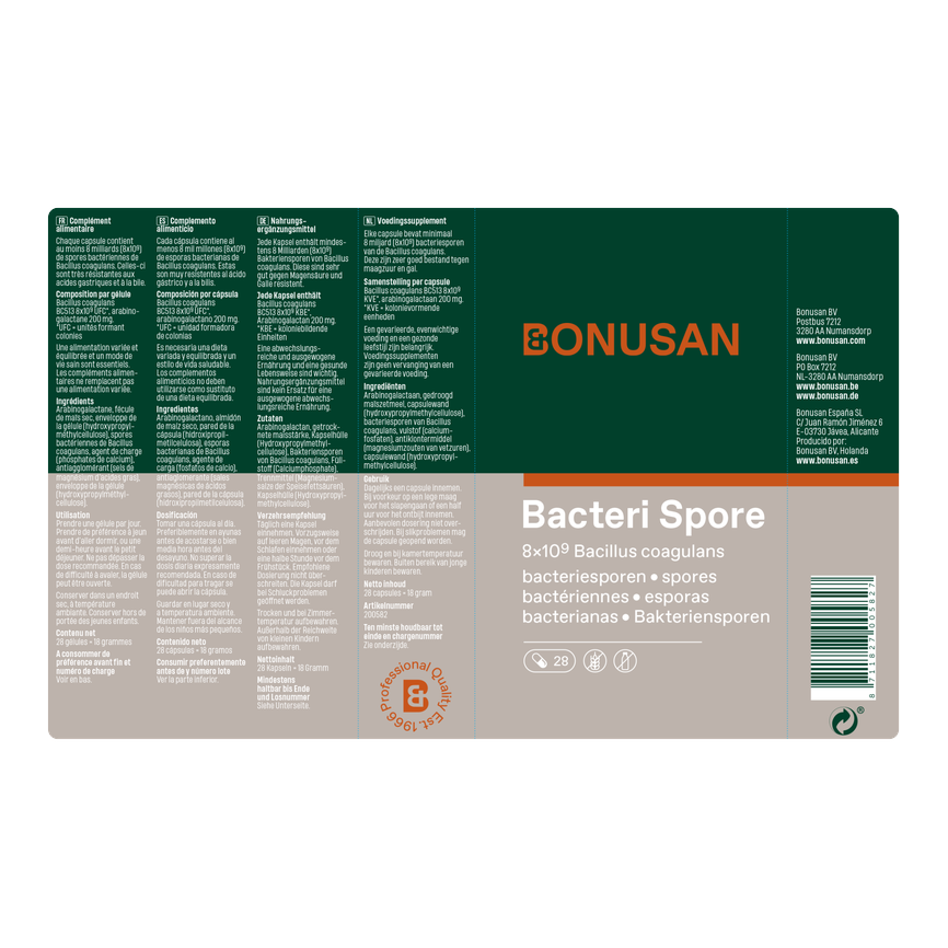 Este producto reemplaza al Probio Spore. Las cápsulas de Bacteri Spore de Bonusan vienen bien en todo tipo de situaciones. Por ejemplo, al comer fuera de casa o de viaje, cuando no sepam...... leer másAñadir al carritoBACTERI SPORE 28vcaps. BONUSANEste producto reemplaza al Probio Spore.