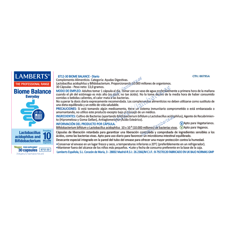 BIOME BALANCE EVERYDAY 30 caps.LAMBERTS (antes ACIDOPHILUS EXTRA 10)
