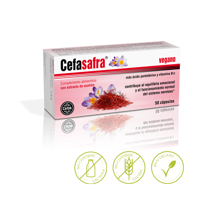 Cefasafra es un complemento alimenticio que contribuye al equilibrio emocional y al funcionamiento normal del sistema nervioso. Es un producto de alta calidad con extracto de azafrán&nb...... leer másAñadir al carritoCEFASAFRA 50cap CEFAK COBASCefasafra es un complemento alimenticio que contribuye al equilibrio emocional y al funcionamiento normal del sistema nervioso. Es un producto de alta calidad con extracto de azafrán y vitaminas B en altas dosis.