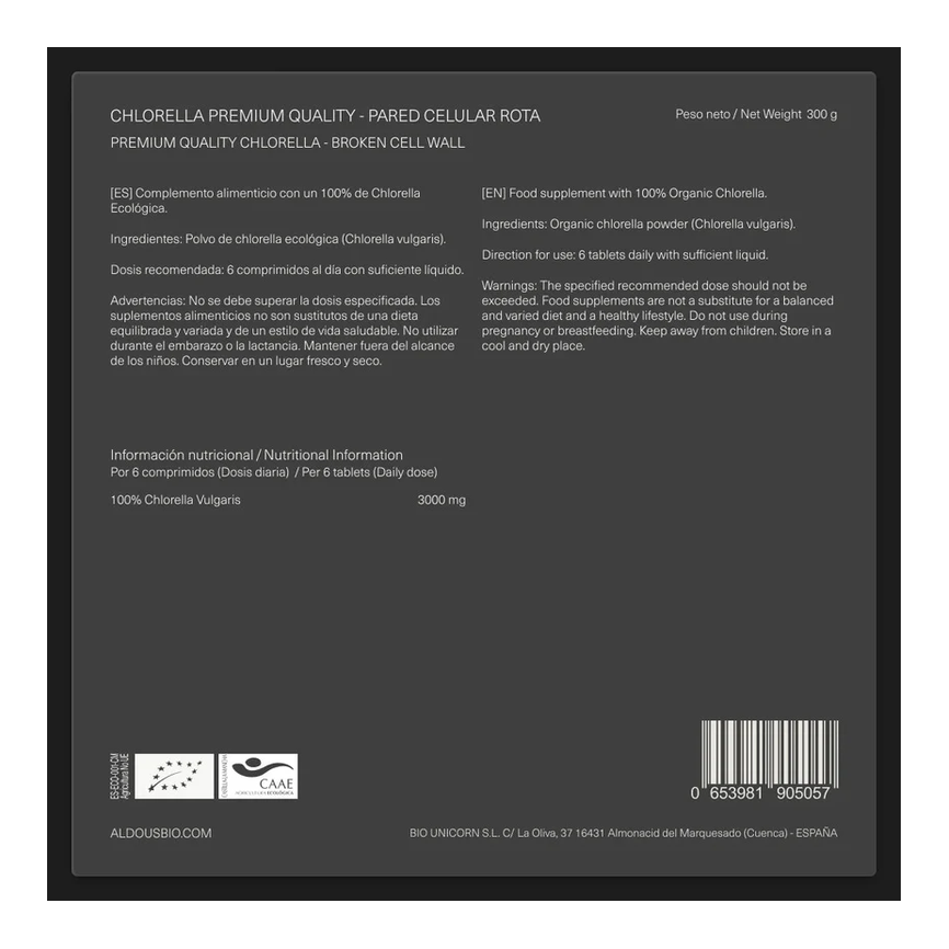 Composición:Información Nutricional: Chlorella Ecológica
