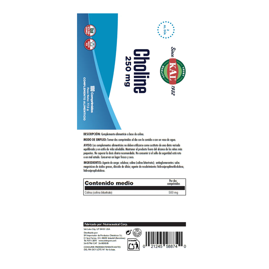 CHOLINE - 100 COMPRIMIDOS Complemento alimenticio a base de colina. ... leer másAñadir al carritoCHOLINE COLINA KAL 250mg. 100comp. SOLARAYCHOLINE - 100 COMPRIMIDOS