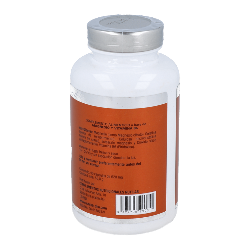 Composición:Magnesio (citrato de magnesio), Gelatina (agente de recubrimiento), Celulosa microcristalina (agente de carga), Estearato magnesio, Dióxido de silicio (antiaglomerante), Vitamina B6 (Piridoxina).