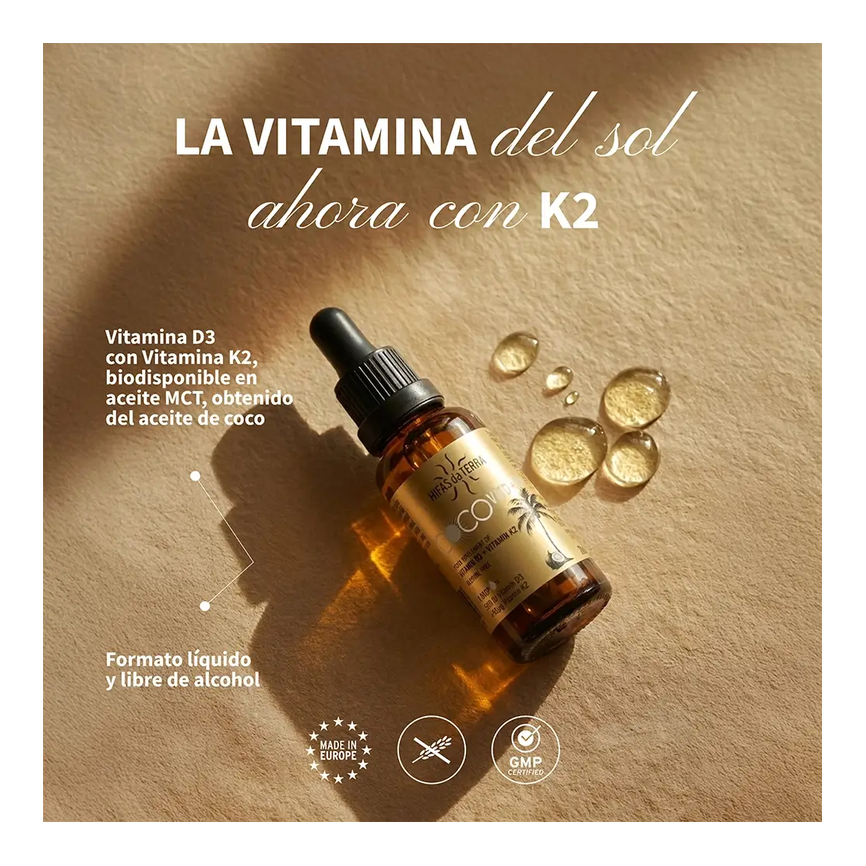 Vitamina D3 + Vitamina K2 biodisponible en aceite MCT extraído del aceite de coco: