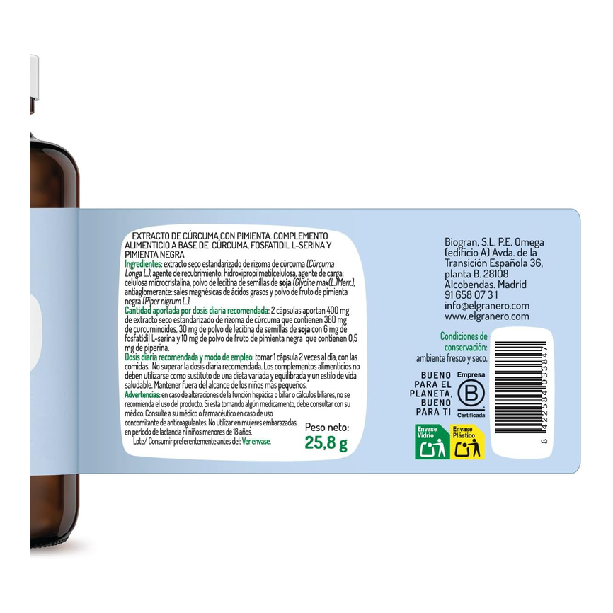 EXTRACTO DE CURCUMA CON PIMIENTA 60caps. EL GRANERO