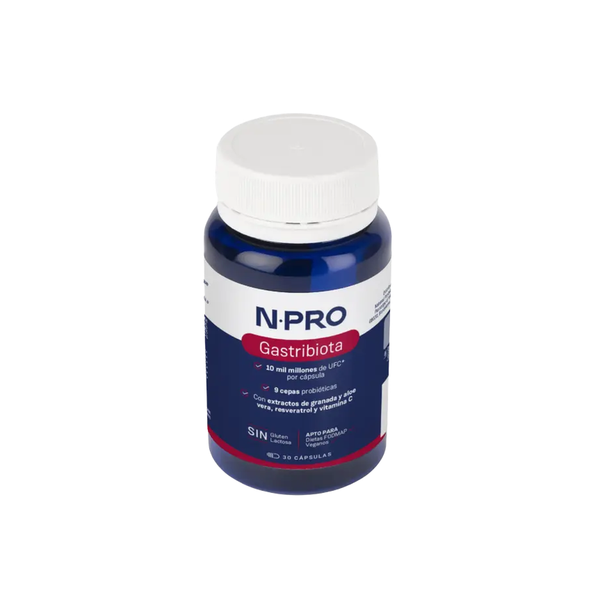 NPro Gastribiota incluye 9 cepas bacterianas, resveratrol, vitamina C y extractos de granada y aloe vera. El aloe vera ayuda a la función digestiva y contribuye a las defensas naturales cont...... leer másAñadir al carritoGASTRIBIOTICA 30 capsulas - NPRONPro Gastribiota incluye 9 cepas bacterianas, resveratrol, vitamina C y extractos de granada y aloe vera. El aloe vera ayuda a la función digestiva y contribuye a las defensas naturales contra los microorganismos.