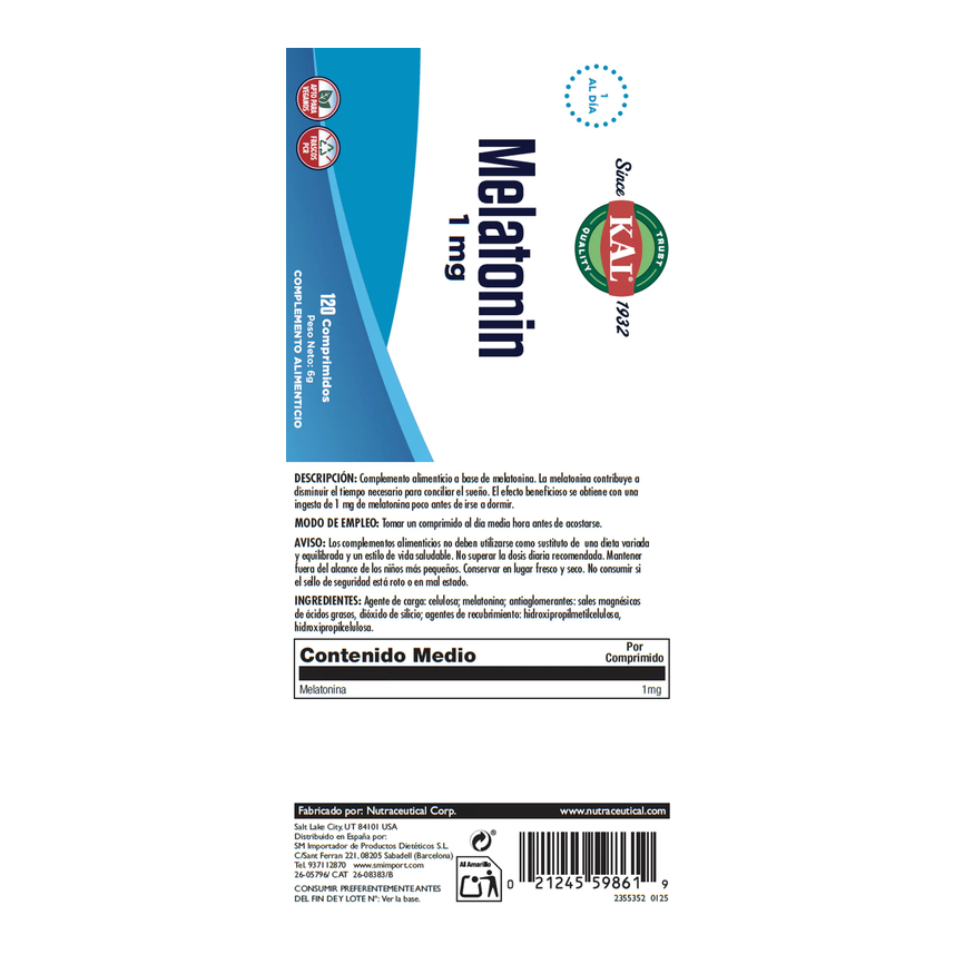 MELATONINA 1mg. 120comp. KAL SOLARAY
