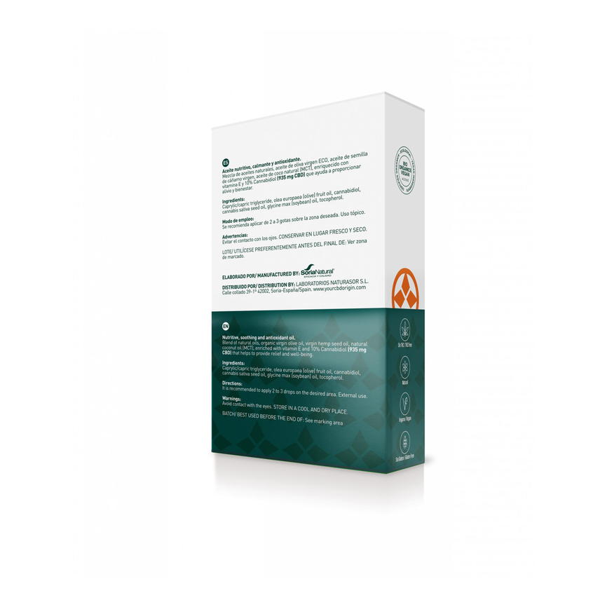 Aceite nutritivo, calmante y antioxidante con Cannabidiol Mezcla de aceites naturales, aceite de oliva virgen ECO, aceite de semilla de cáñamo virgen, aceite de coco natura...... leer másAñadir al carritoNATURAL OIL BLEND CBD BIO ORIGIN 10% 10ml. SORIA NATURALAceite nutritivo, calmante y antioxidante con Cannabidiol