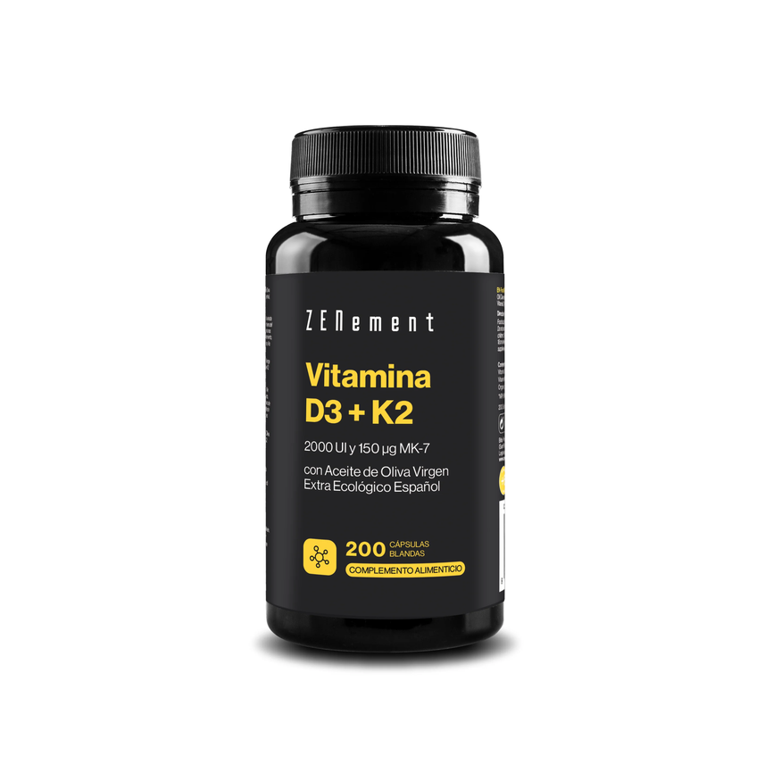 FORTALECE LAS DEFENSAS, HUESOS, DIENTES Y MÚSCULOS: Combinación idónea para ayudar a tus defensas y a fortalecer tus huesos, musculatura, articulaciones y dientes. La v...... leer másAñadir al carritoVITAMINA D3 + K2 COLECALCIFEROL (2000 UI) y MK-7 (150 mcg) 200caps. ZENEMENT- FORTALECE LAS DEFENSAS, HUESOS, DIENTES Y MÚSCULOS: Combinación idónea para ayudar a tus defensas y a fortalecer tus huesos, musculatura, articulaciones y dientes. La vitamina D3 (colecalciferol) es una vitamina liposoluble que ayuda al cuerpo a absorber el calcio y el fósforo para construir y mantener huesos fuertes, y ayuda al normal funcionamiento del sistema inmunitario. Y la vitamina K2 tiene un papel fundamental en la salud de los huesos.